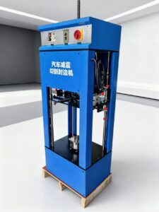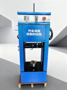 Automobile shock absorber cutting and edge banding machine, blue body, industrial quality, good function. Equipped with professional control system, the operation is simple and safe, and it is suitable for automobile repair shops. The machine body is stable, the cutting and edge sealing effect is good and the efficiency is high.